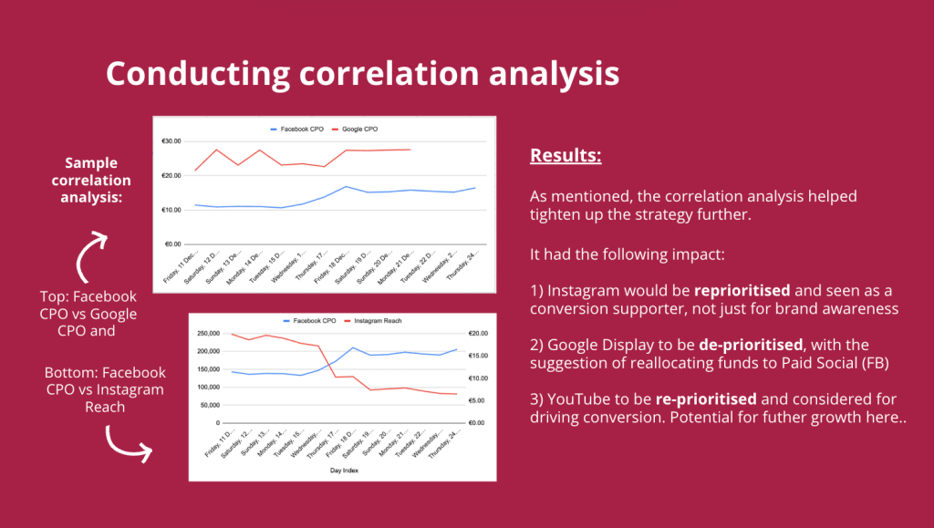 I also conducted an analysis to investigate any potential effects of one channel’s performance on another to inform the new strategy.