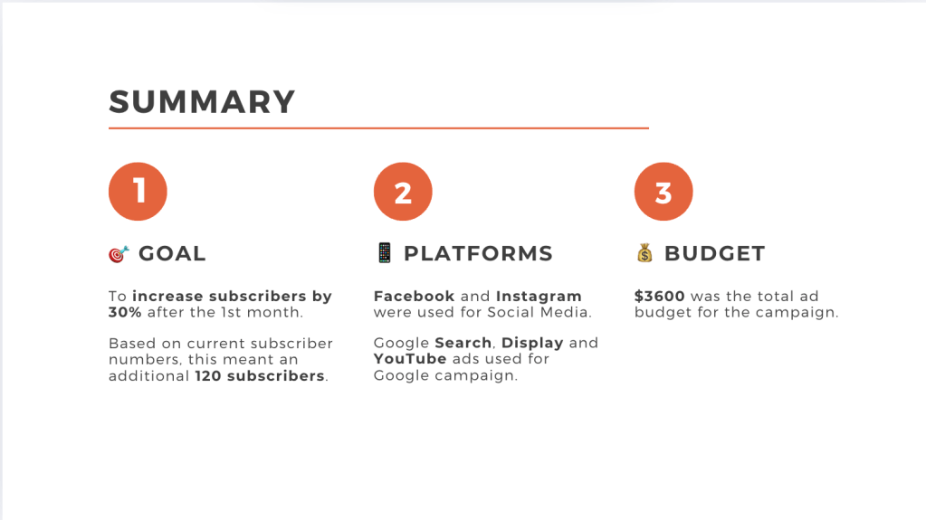 In this project, I gained first-hand experience creating Facebook and Google Search Ads, setting me up for success devising future PPC (Paid-per-Click) ads. Having the chance to also devise the strategy for the campaign allowed me to gain experience in higher level thinking and a solid grounding in creating targeted paid campaigns.